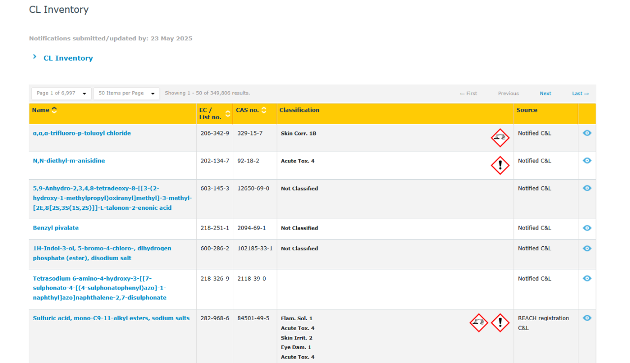 赫尔辛基,2025年5月20日-C&L清单包括超过4400个欧盟协调分类和700万个已通知或包含在REACH注册中的分类的信息,该清单总共包括约35万种物质的数据。ECHA重新设计的C&L清单现在可以在该机构的新化学品数据库ECHA CHEM中找到。